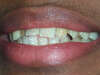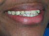 Cette très jeune patiente présente des défauts de l'émail et des chevauchements au niveau de ses incisives latérales.Il a été décidé de procéder à la pose de facettes collées pour aligner ses dents et cacher la texture de son émail et de faire un blanchiment de ses dents inférieures.